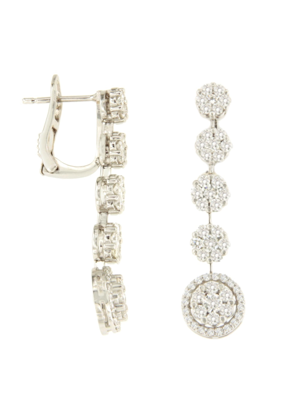 Pendiente KIMBERLEY largo oro blanco de 18 ktes con rosetas de brillantes.