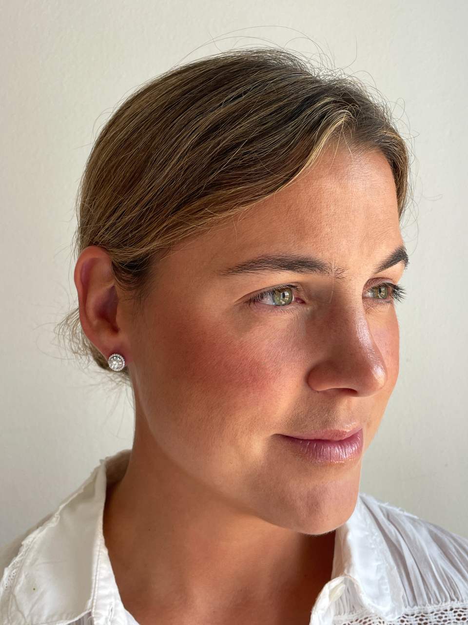 MIRTILLO, son unos pendientes dormilones de brillantes con vista de ilusion, rodeados de brillantes que están realizados en oro blanco de 18 kilates, ideales para llevar puesto todos los días.