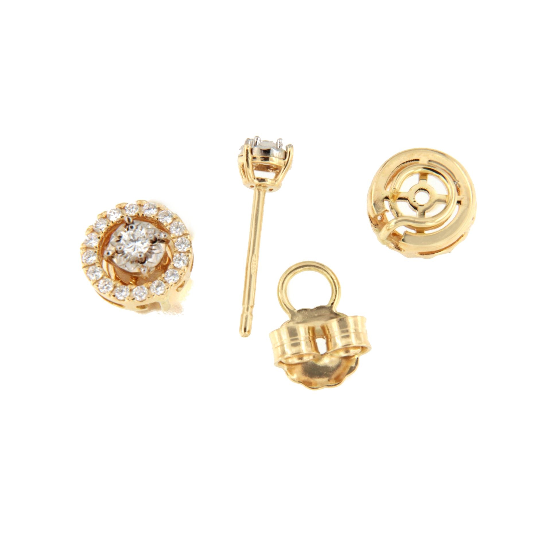 MUNICH, son unos pendientes desmontables cortos en oro amarillo y blanco de 18 kilates. Su diseño es un solitario de brillantes, sobre una base adiamantada y un disco que lo rodea en brillantes.