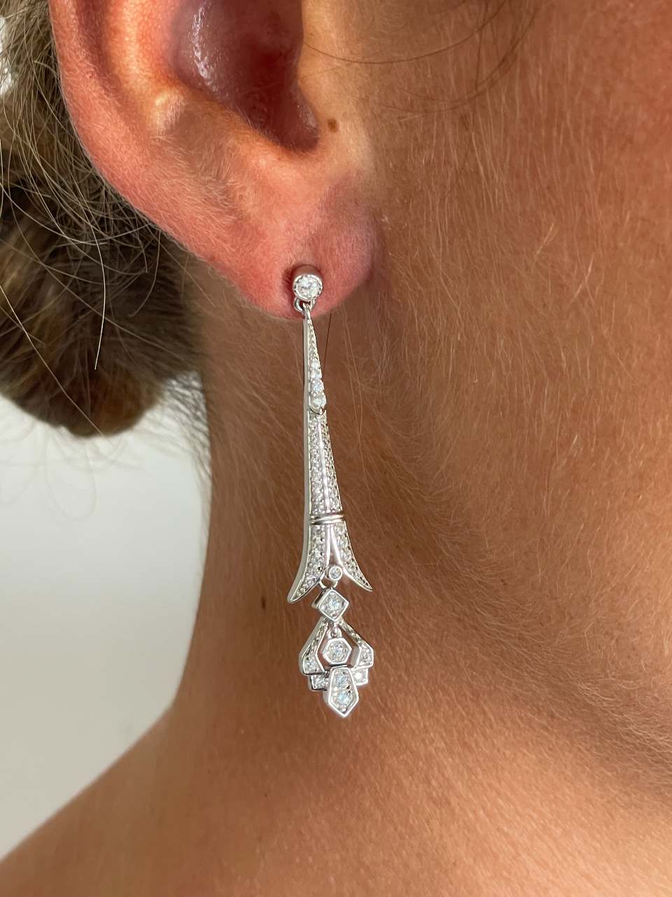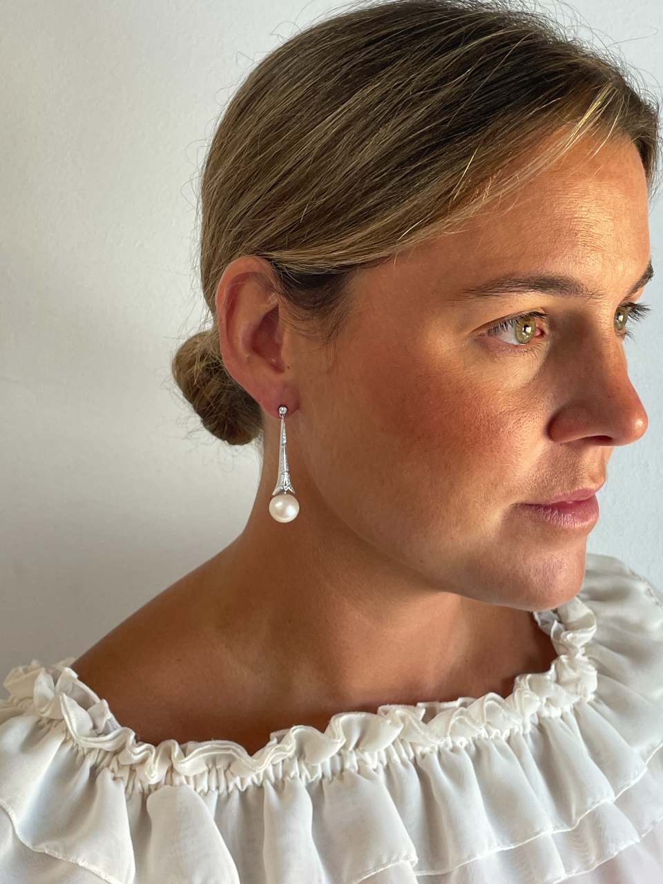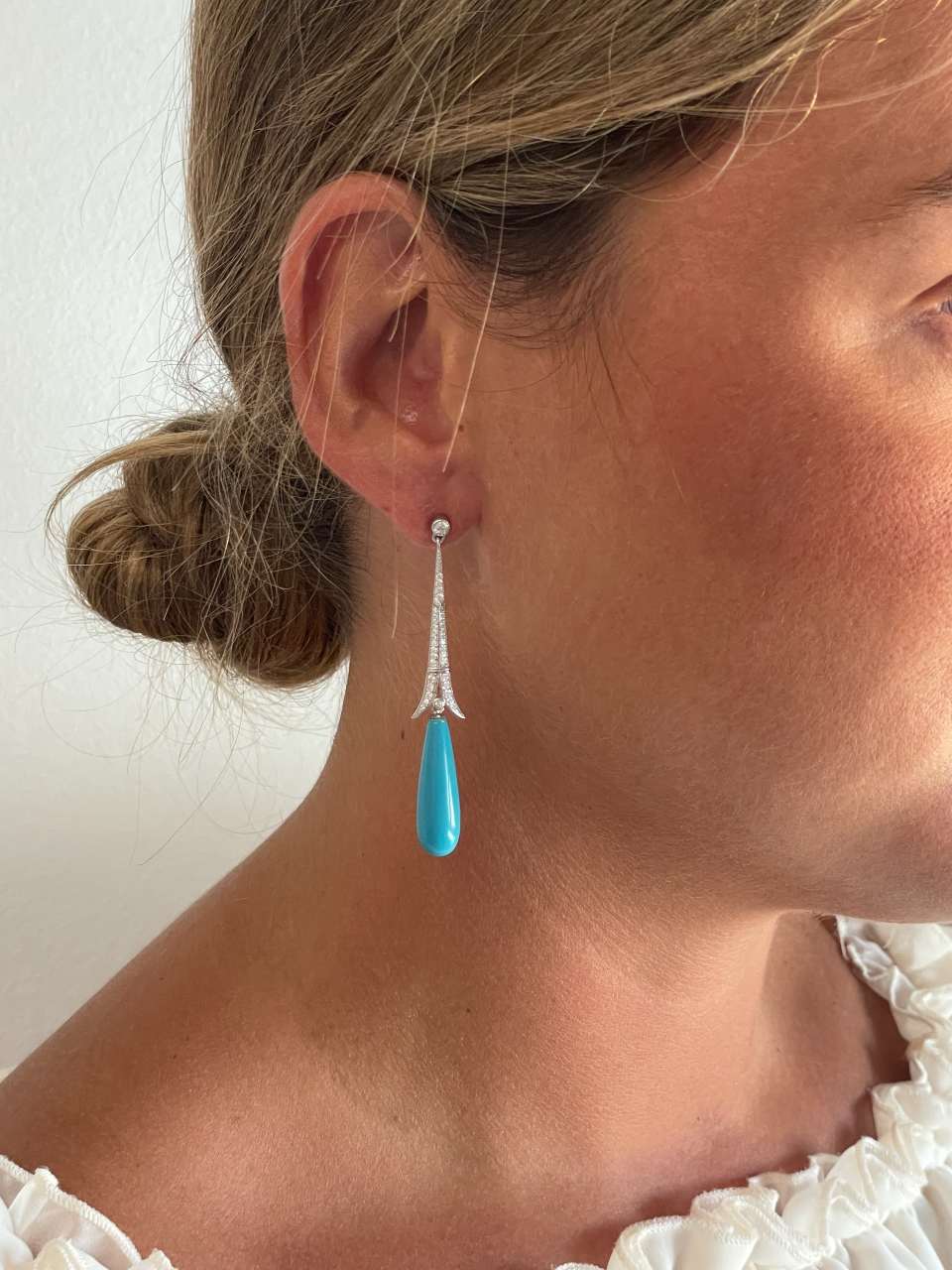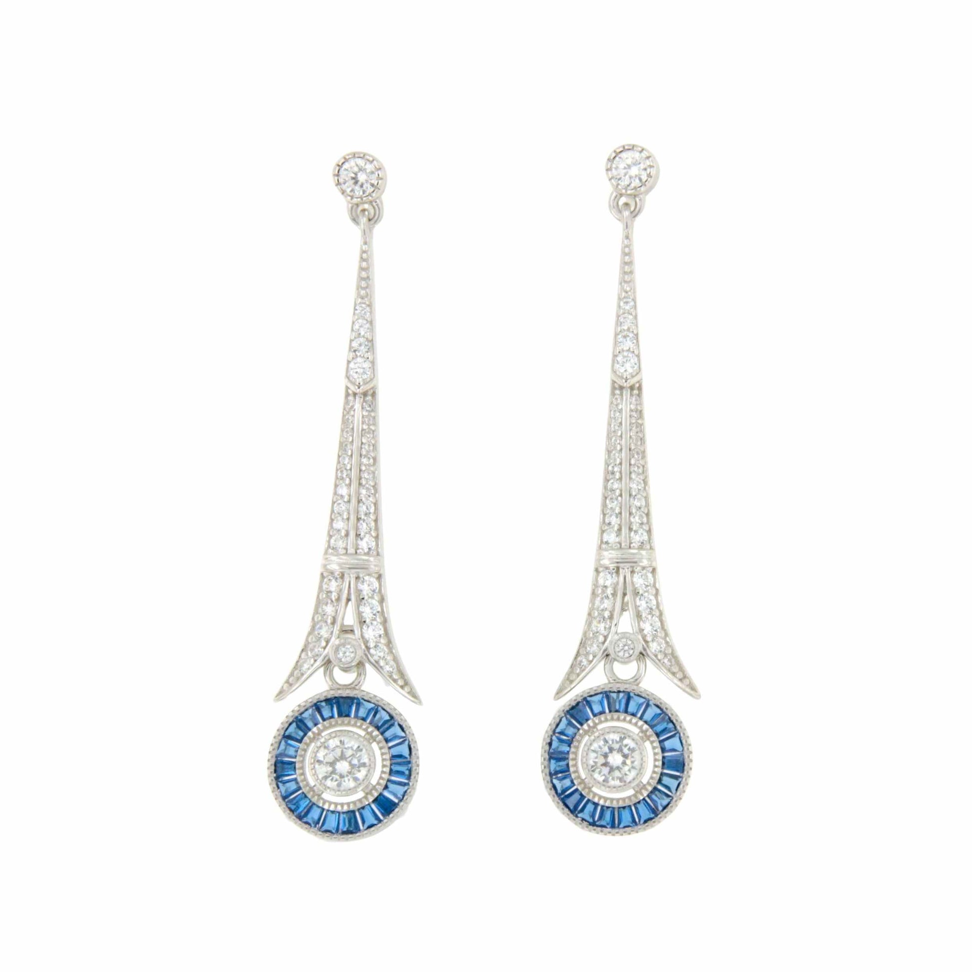 CAULKER son unos pendientes desmontables elegantes y deslumbrantes, ideales para novias e invitadas que quieran destacar en su gran día y busquen una pieza art decó con un toque de color.