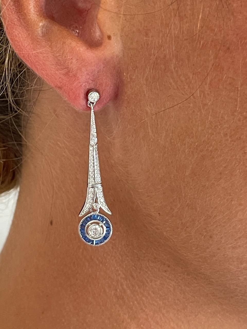 Pendientes CAULKER largos en color esmeralda/ zafiro