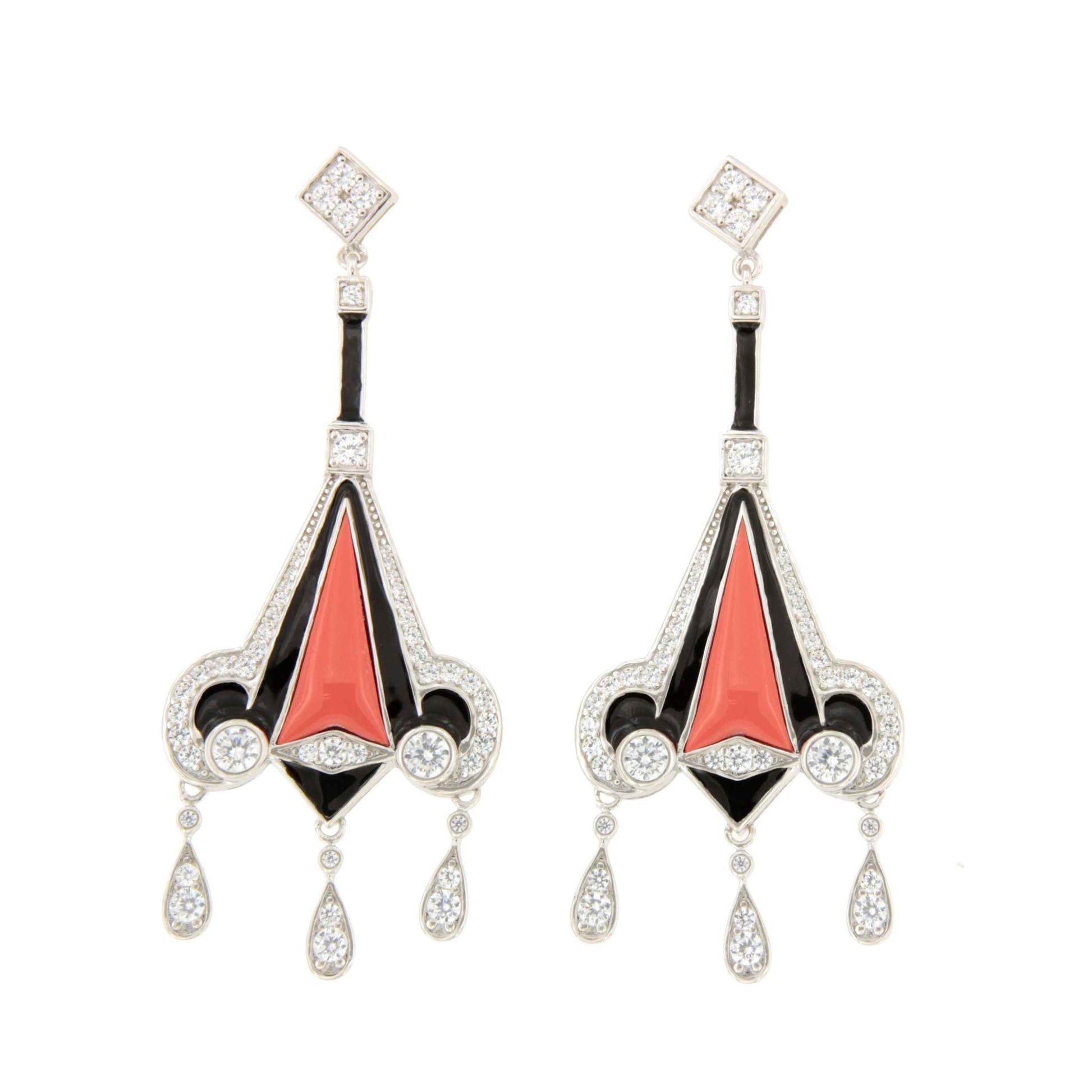 CHARLOT combinan la elegancia del estilo art déco con un toque contemporáneo lleno de color. Su diseño geométrico y equilibrado destaca por su esmalte, imitando el ónix, y coral que aporta carácter y sofisticación.