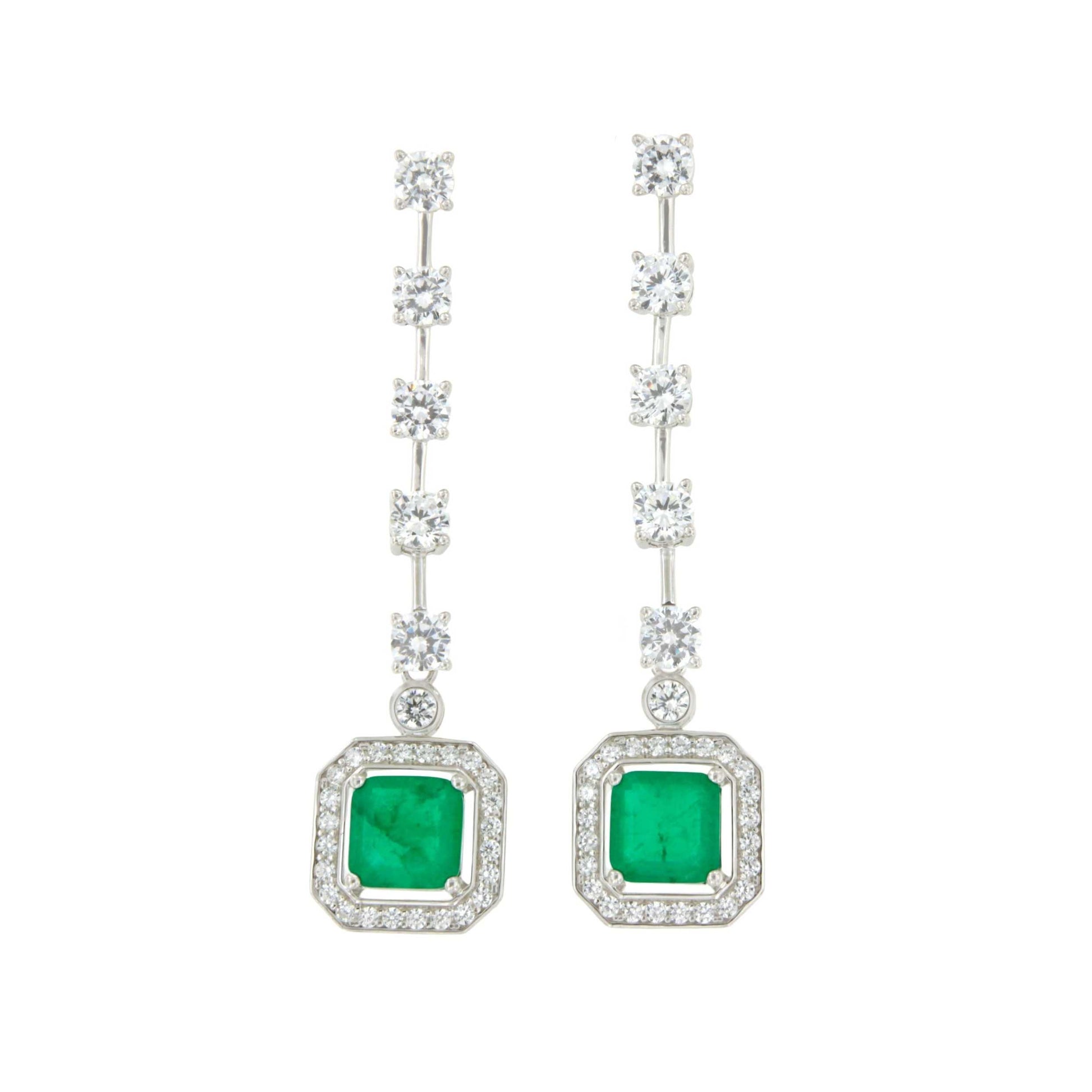 Pendientes largos ROQUES desmontables, hilera de circonitas en plata de ley
