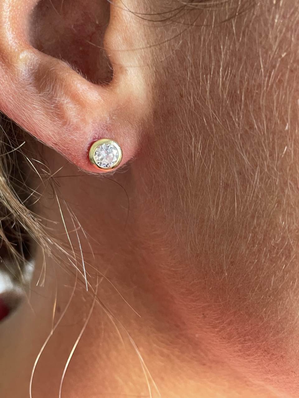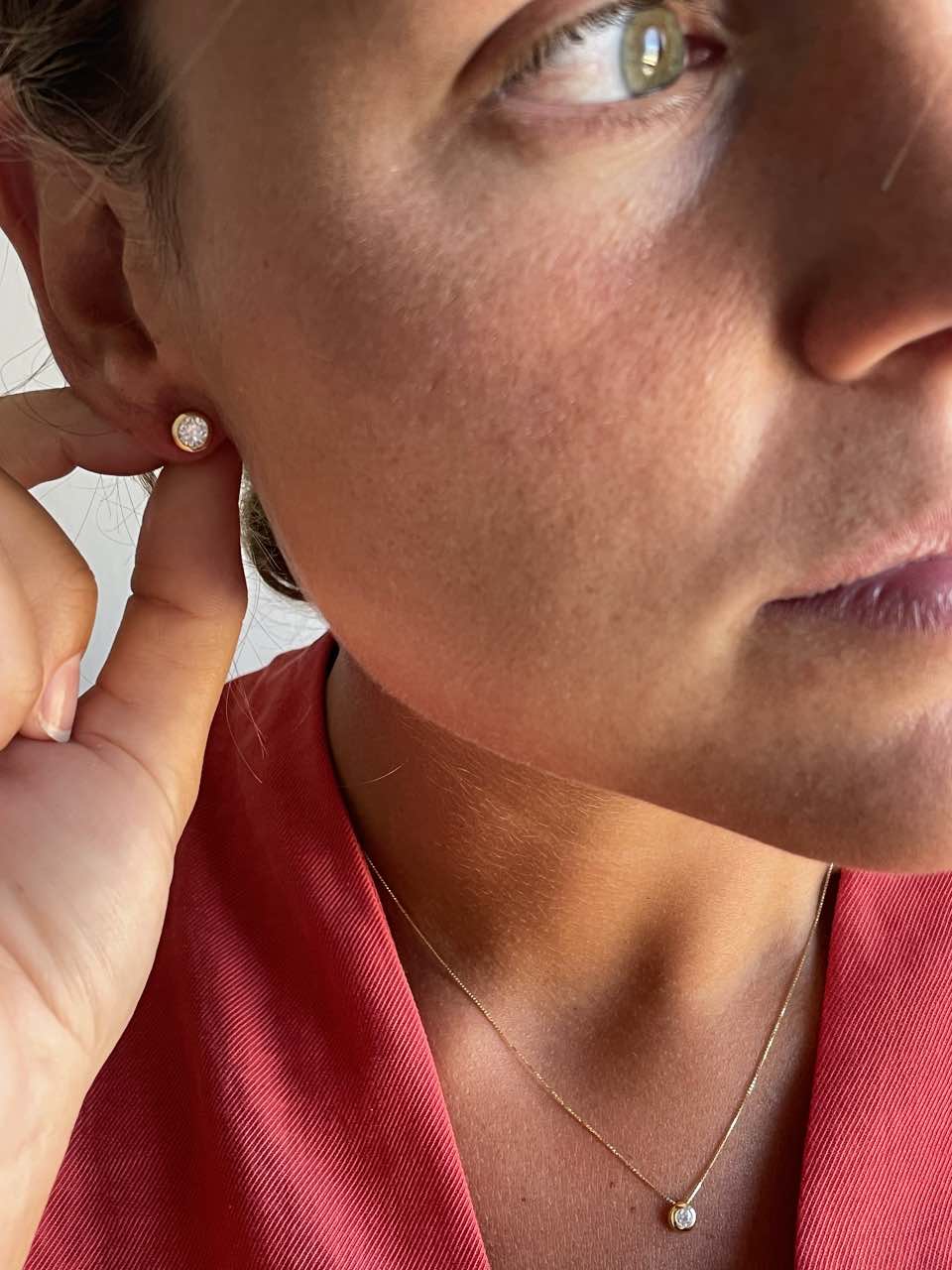 Pendientes NAZARE dormilones en oro de 18 kilates de circonita en boquilla