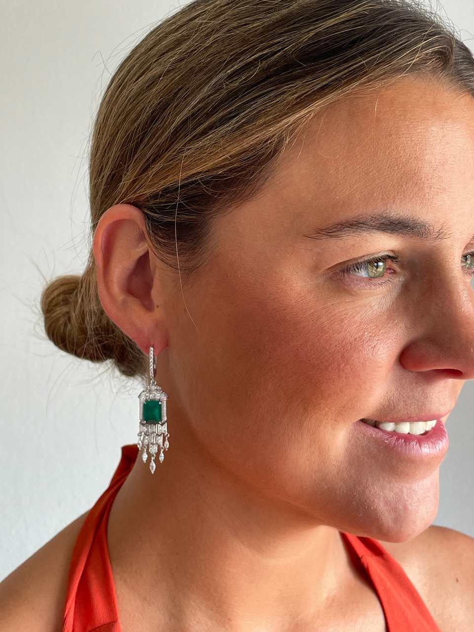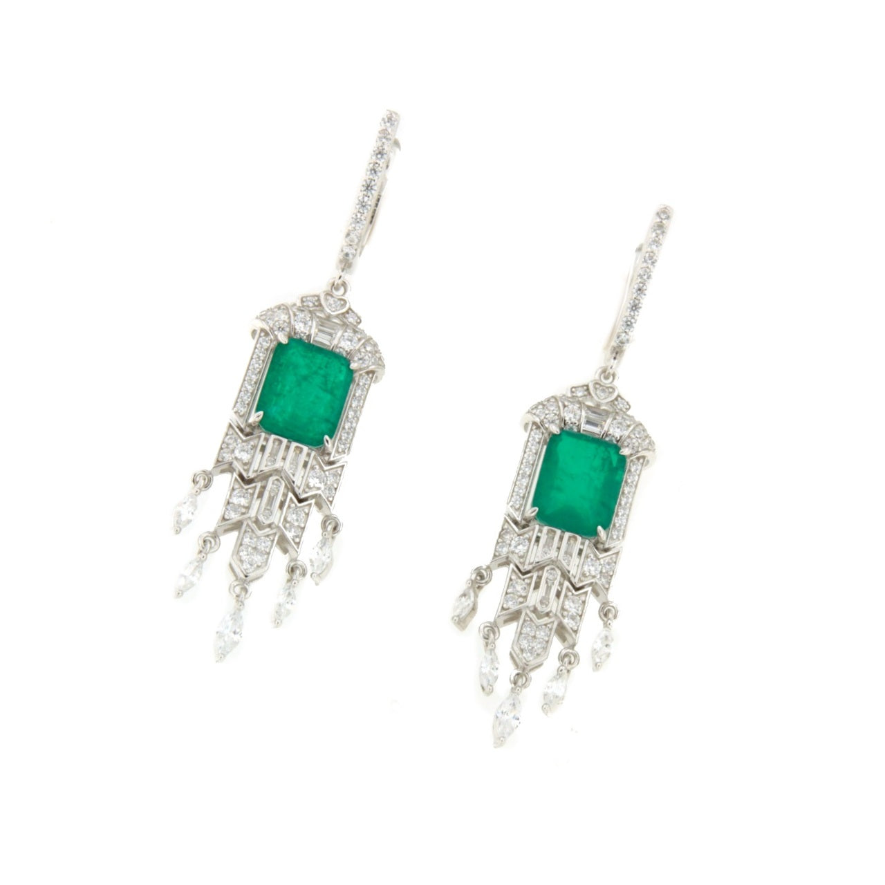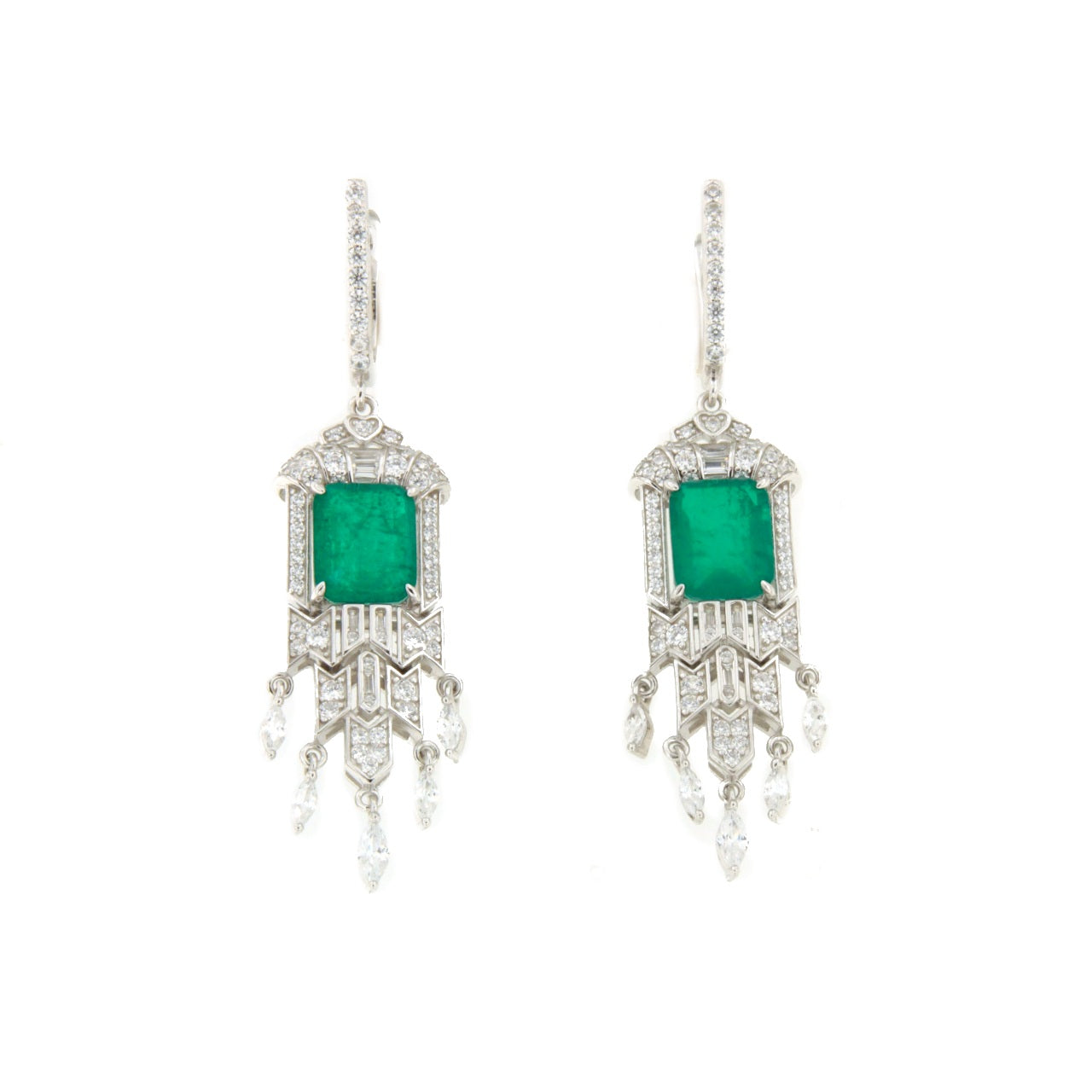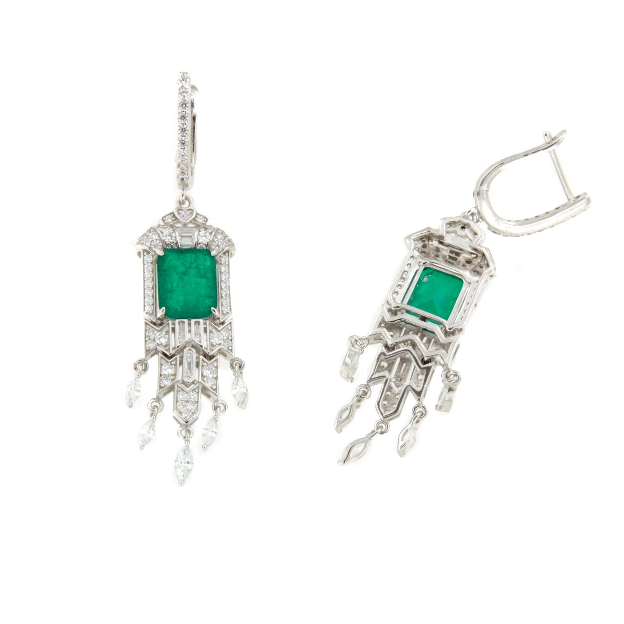 NIVEA, pendientes elegantes y sofisticados con mucho movimiento elaborados en plata de ley, con una imponente piedra central de cuarzo verde que imita el brillo profundo de la esmeralda. Su diseño elegante y refinado resalta la belleza de la piedra, aportando un toque de distinción a cualquier look.