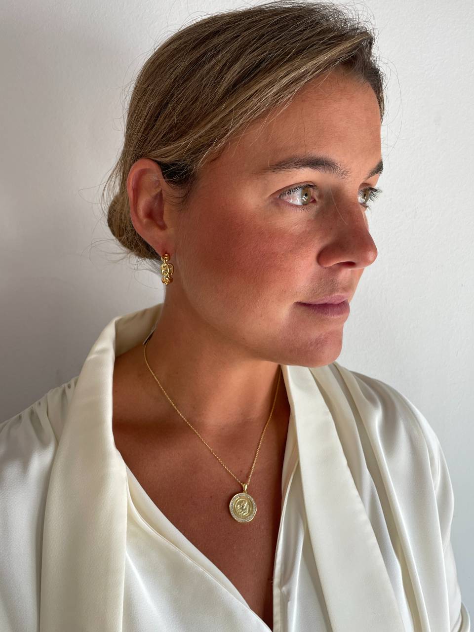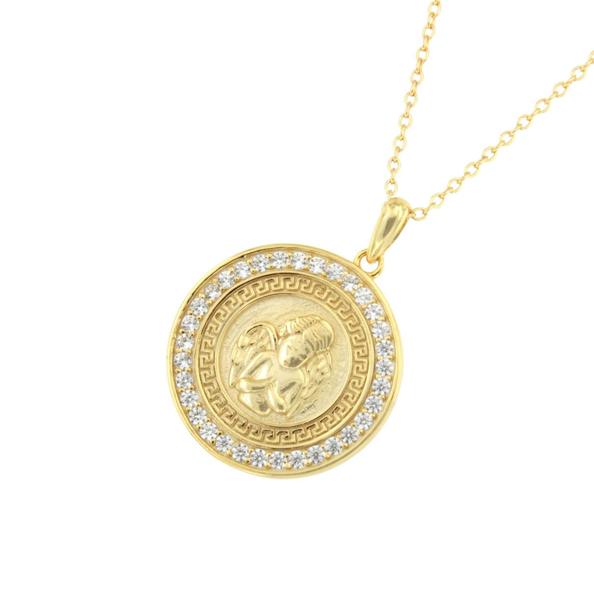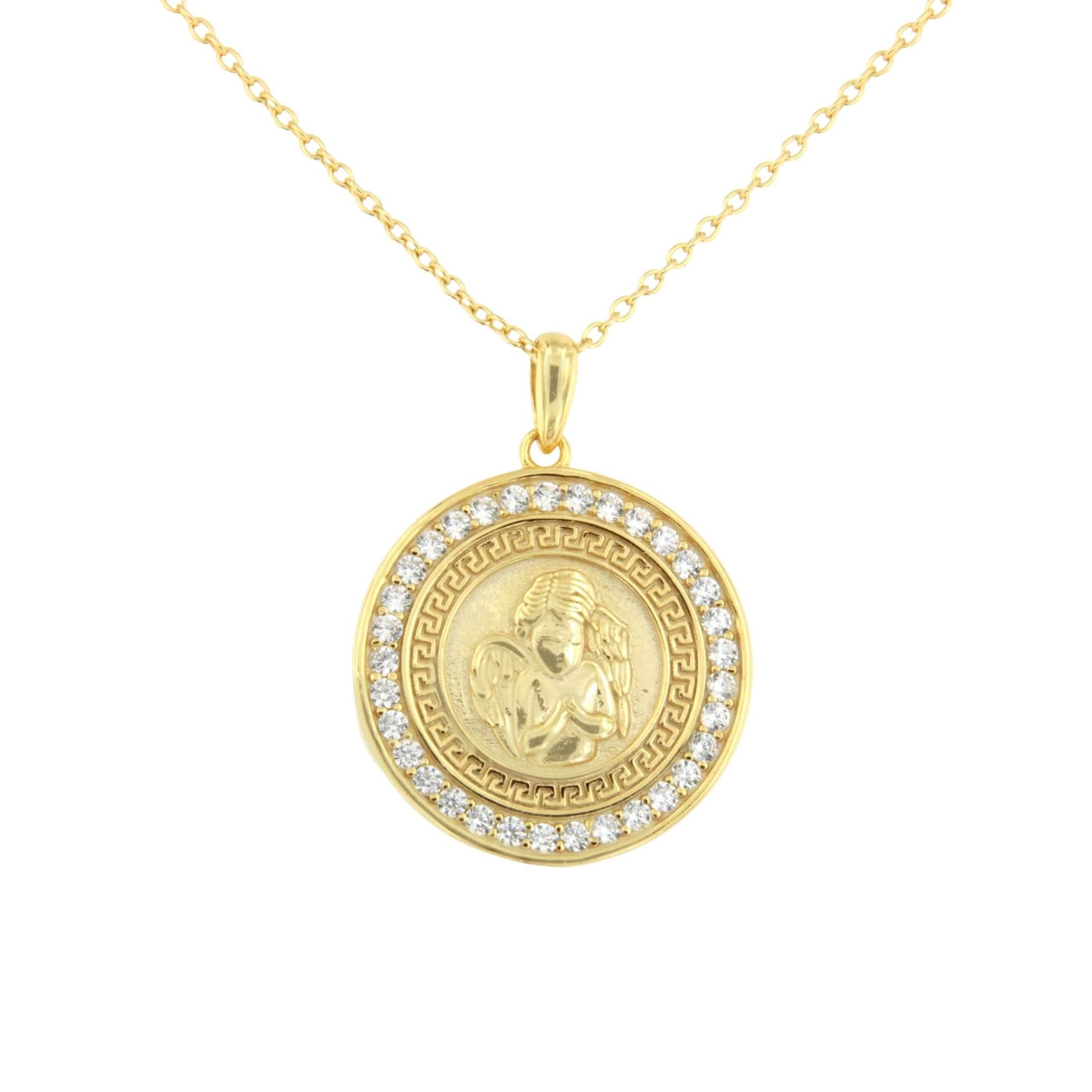 PROVIDENCIA es un collar con una medalla con la imagen de un ángel de la guarda en plata de ley con un baño de oro de 18 ktes y circonitas.